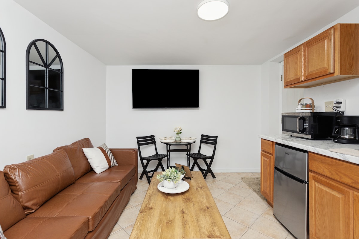 Modern designer studio 1 block from Main St, 8-min walk to Metro-North (35 mins to NYC). Private entrance, fast Wi-Fi, full kitchen, Queen bed + King sofa bed. Small front yard for a breath of fresh air. Walk to restaurants, cafes, and Hudson River parks. Ideal for couples, solo travelers, and remote workers. Explore charming Tarrytown, Sleepy Hollow, Rockefeller trails, and the Hudson Valley. A stylish, comfortable base for your next getaway!