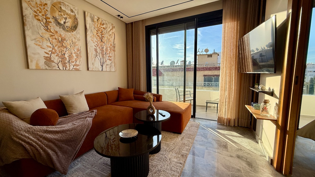 Experience the perfect blend of luxury and comfort in this stylish studio located in the heart of Casablanca. Ideal for both business travelers and vacationers, this modern space features a fully equipped kitchen, a dedicated workspace, and a private terrace for your morning coffee or evening relaxation. Unwind in the spacious living area with floor-to-ceiling windows that flood the space with natural light, or take advantage of the on-site gym to stay active during your stay.