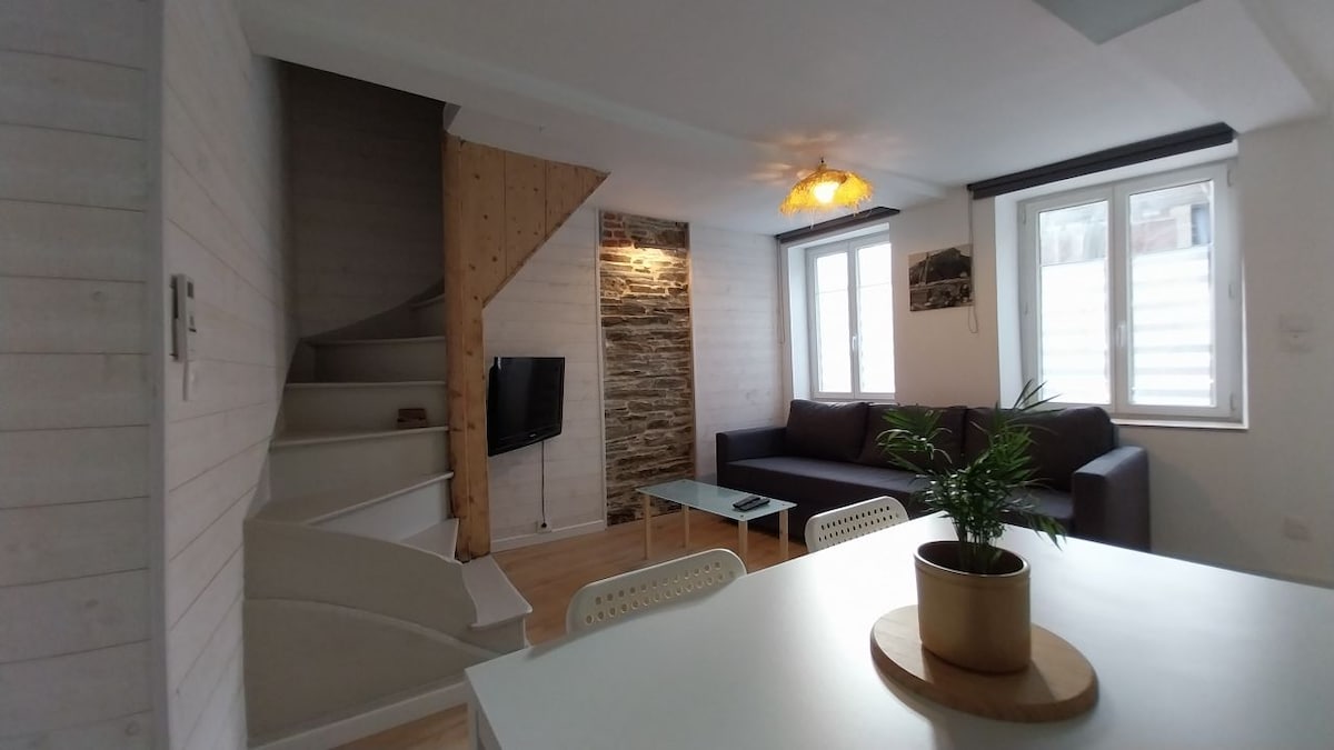 Gîte indépendant rénové non fumeur , face aux étangs de la Ville de Nouzonville Arrivée autonome. Avec 2 chambres , 2 lits double 140 x 190 2 lits d'appoint 80 x 190 lit d'enfant jusqu'à 4 ans Cuisine tout équipée Salle de Bain avec douche Salon avec Télévision , wifi . Bibliothèques Endroit sécurisé pour vélos. 500 mètres de la voie verte , 400 mètres du centre ville et des commerces , 10 minutes de Charleville Mézières ,15 minutes de la Transemoysienne . 8km de la Belgique.