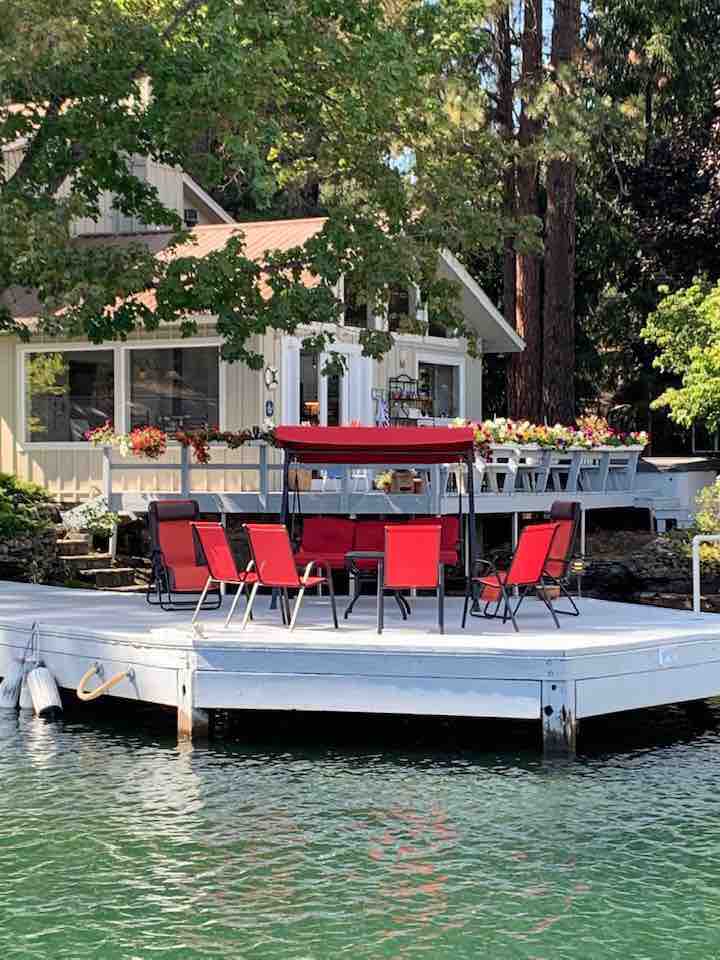 Newly renovated cabin on Hayden Lake. Hayden Lake is a smaller, less populated mountain lake preferred by locals. Bring the family and friends! There are 2 king beds, 4 bunks and 1 deluxe queen sofa sleeper. The cabin comfortably sleeps 9 people. There are 3 full baths! Added bonus-nice office setup for remote workers too!! Has A/C & heat. Enjoy the boat slip and 2 jet-ski ports! Over 3,000 sq/ft of trex deck on our three levels of decks. High-speed Internet & Wi-Fi at the cabin as well.
