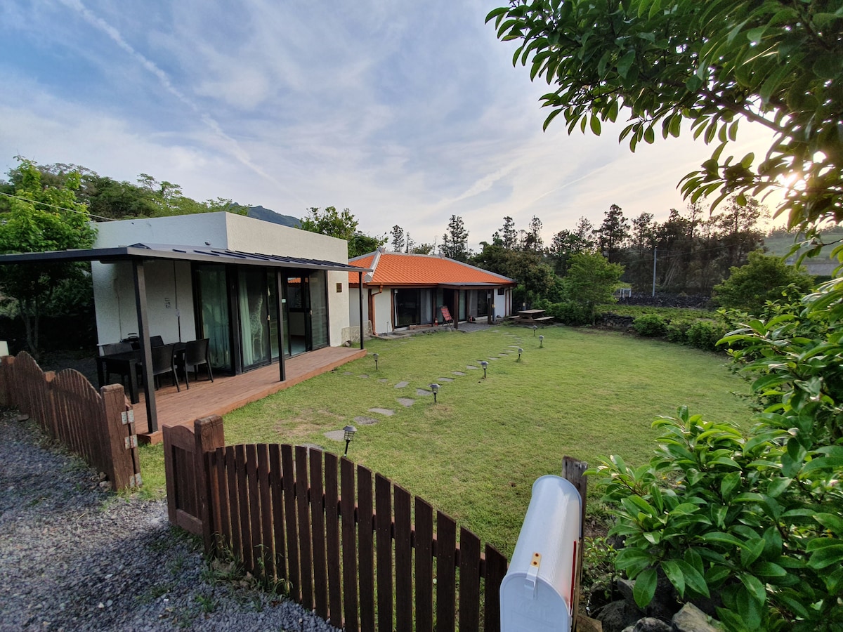 济州岛私人住宿。花园按摩浴缸,适合家庭入住