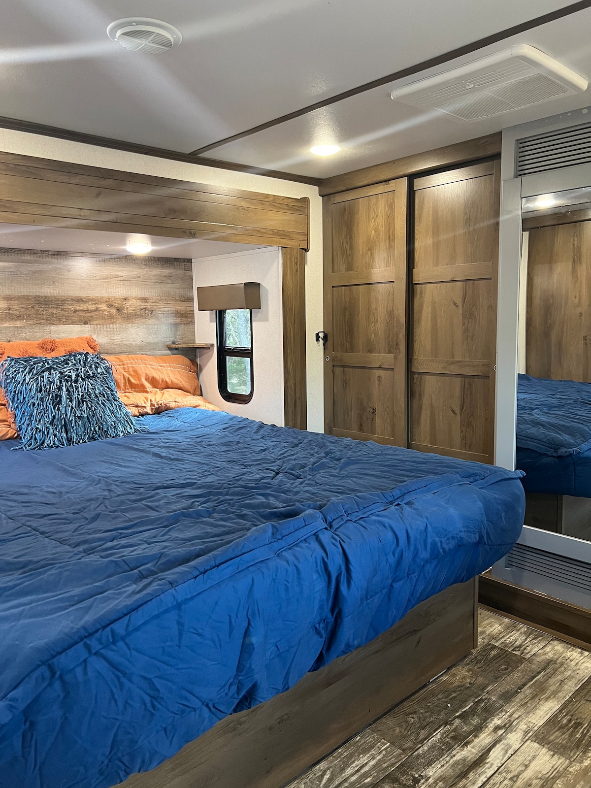 Paraiso del Canyon is our little piece of paradise, a 6.5-acre homesite tucked away in a heavily wooded area. Enjoy the seclusion of this 32-foot RV, one Queen bedroom with a full pull out couch accommodating up to 4 people. This pet friendly site is hidden from the home on site where the hosts live.