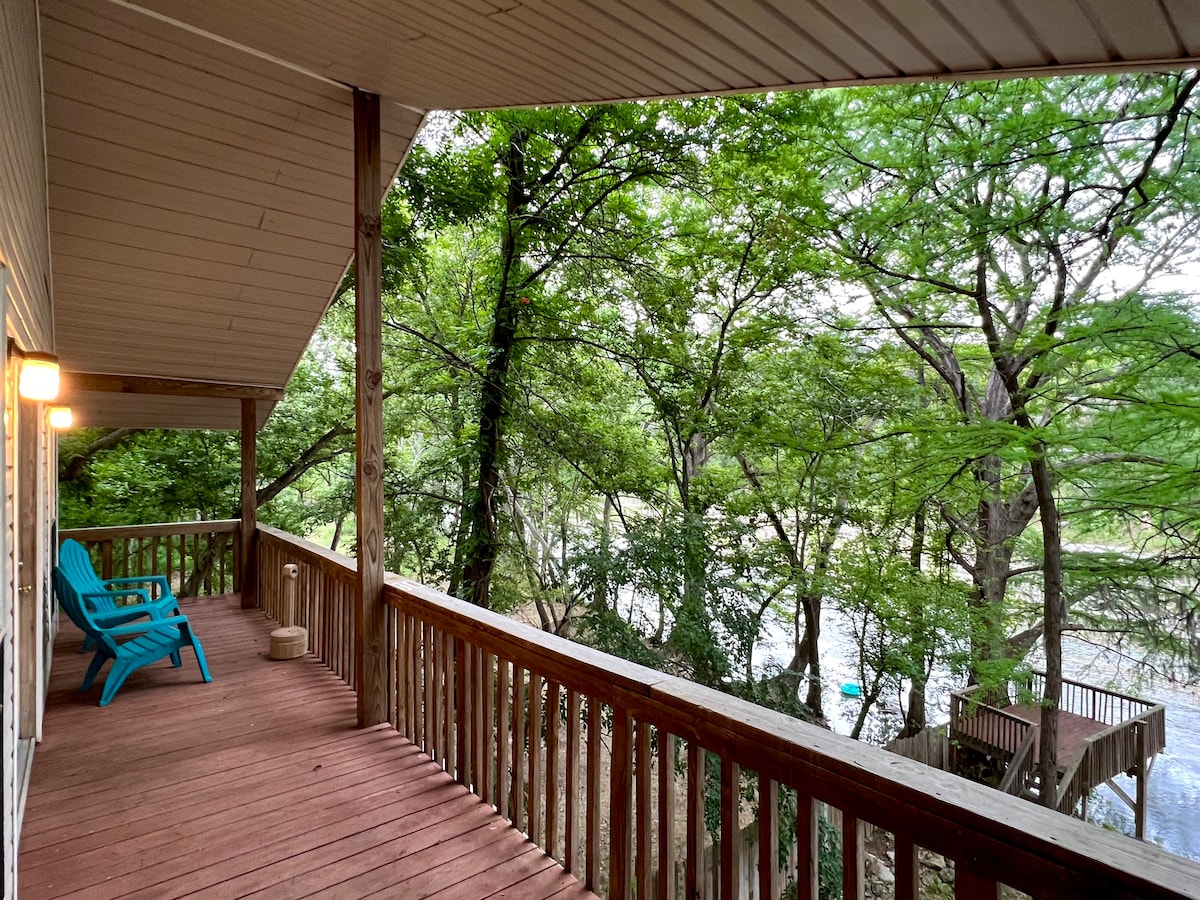 Drive up the tree-lined hills to Hilltop Hideaway-a place to rest, relax, & reconnect, surrounded by the beauty of the Texas Hill Country. A peaceful spacious retreat for your family or friends to gather, laugh, & make memories. Dog friendly, boat trailer parking, & full RV hookup! Multiple outdoor gathering areas, cozy livingroom, walk-in shower, 2 dining areas, firepit, porch bedswing, fully equipped kitchen & gameroom. Convenient to: Canyon Lake, New Braunfels, Wimberley, San Antonio, Austin.