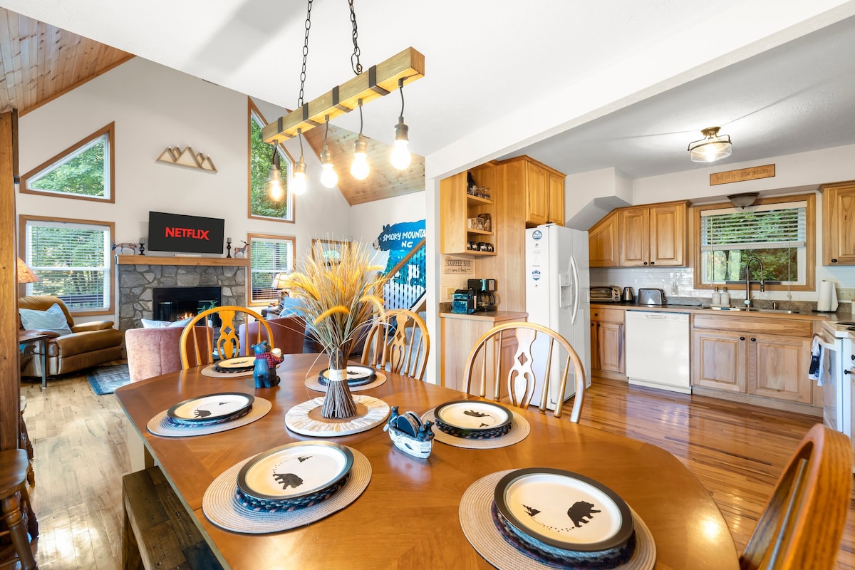 20 Min to Waynesville with Main Street Shops, Fine Dining and Breweries 20 Min to Blue Ridge Parkway 25 Min to Cataloochee Ski Area 25 - 45 Min to Great Smoky Mountains National Park 35 Min to Asheville Private cabin inside gated community located in Waynesville, the 'Gateway to the Smokies'. Enjoy endless adventures in the breathtaking mountains of Western NC or simply relax in our fully equipped cabin with year round mountain views, hot tub, covered porch, multiple fireplaces and a game loft.