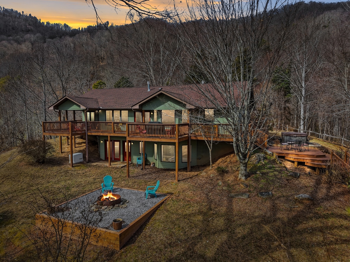 Not just a room with a view....but a whole home with VIEWS and lots of property for privacy and the experience of "A Picture Perfect Mountain Chalet" Relax and Enjoy Long-Range Mountain Views from the Living Room and Decks of this Stunning 2 Bed / 2 Bath Home. Modern Kitchen Opens to Stone Faced Fireplace & expansive Windows, lots of outdoor space to enjoy with nature, Recently Remodeled for the modern yet rustic appeal, on 25+ acres with hiking trails onsite- near Waynesville and Asheville.