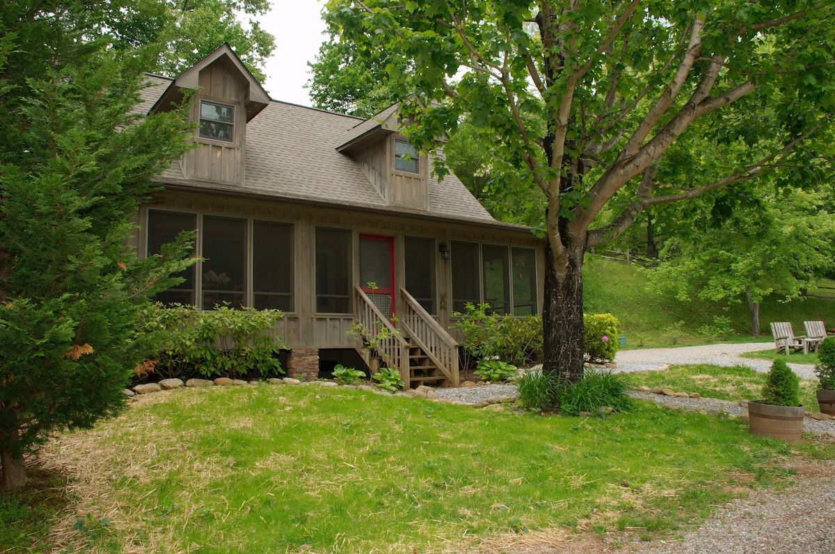 Maggie Valley-Birdsong Cottage is a romantic, cozy cabin retreat w/ a private hot tub & indoor/outdoor fireplaces and a fully screened porch. Thoughtfully designed for comfort & style—ideal for a honeymoon, anniversary, or cozy mountain getaway. Enjoy access to the MV Club & Resort community pool, golf, tennis, & a relaxed on-site restaurant. Centrally located - waterfalls, hiking, shopping, dining, skiing, tubbing, fishing, etc. Easy, paved, non-steep road access makes arrival stress-free.