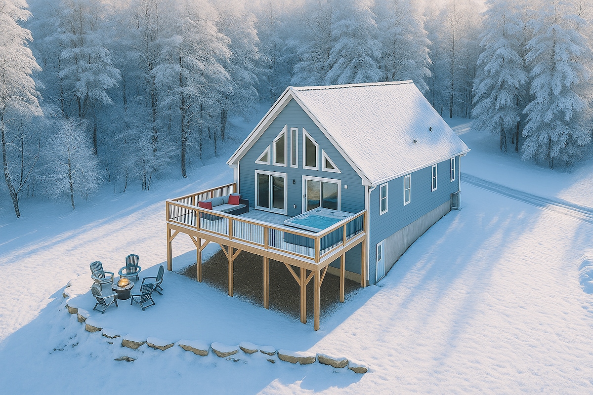 豪华山间度假木屋,热水浴缸,火坑,靠近滑雪场,景观