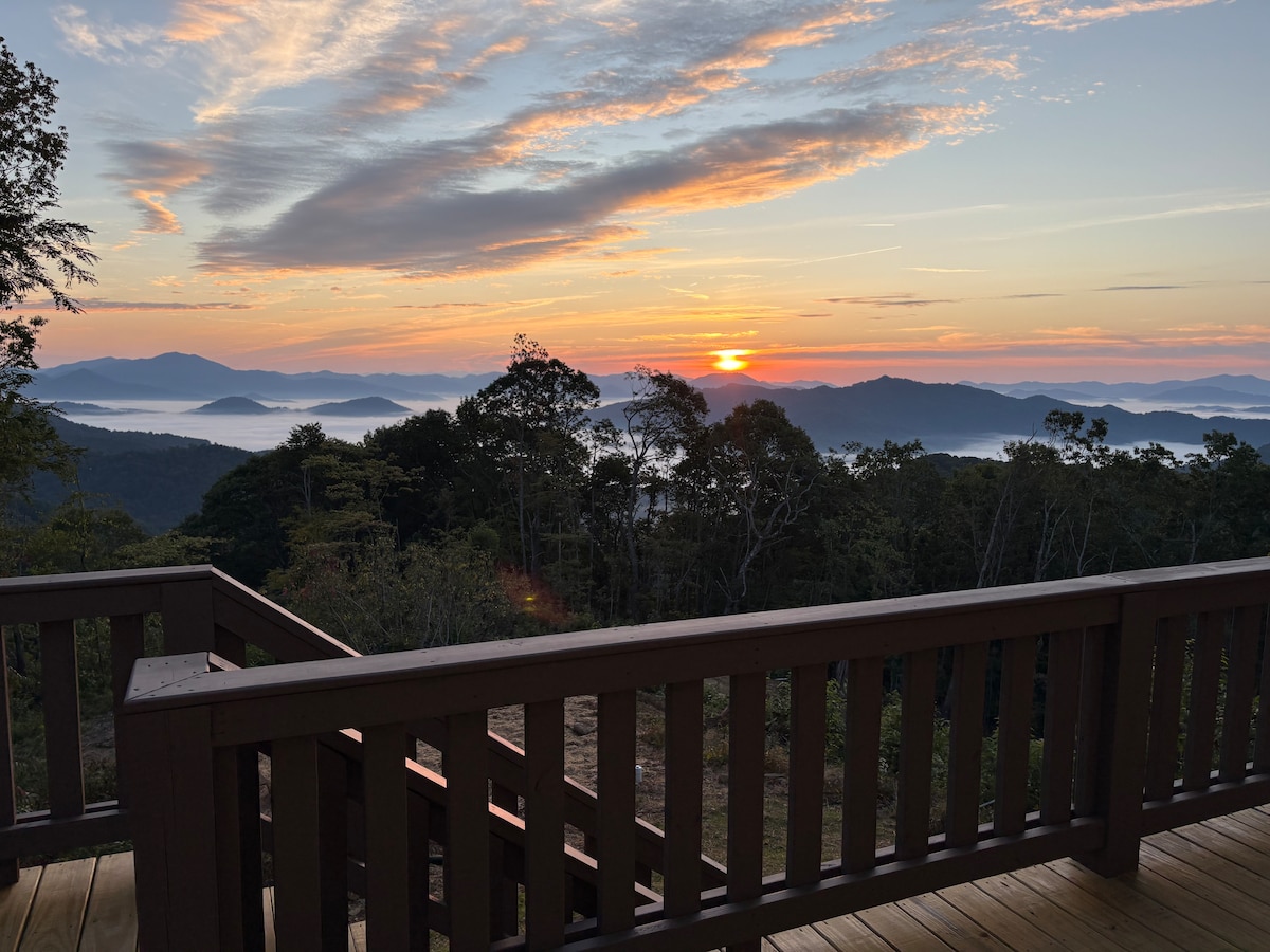 Breathtaking westward views in a comfortable retreat, complete with outside porch-swing memory foam bed and rockers. Peaceful getaway to rest and unwind after a day filled with exploring, hiking, shopping, or visiting one of the many breweries in our area. Have a glass of wine on the porch and soak in the mountain air. 15 minutes to downtown Waynesville; 35 minutes to Asheville. *@3500ft= curvy/steep drive up the mtn. * Please read more in "The Space" section.