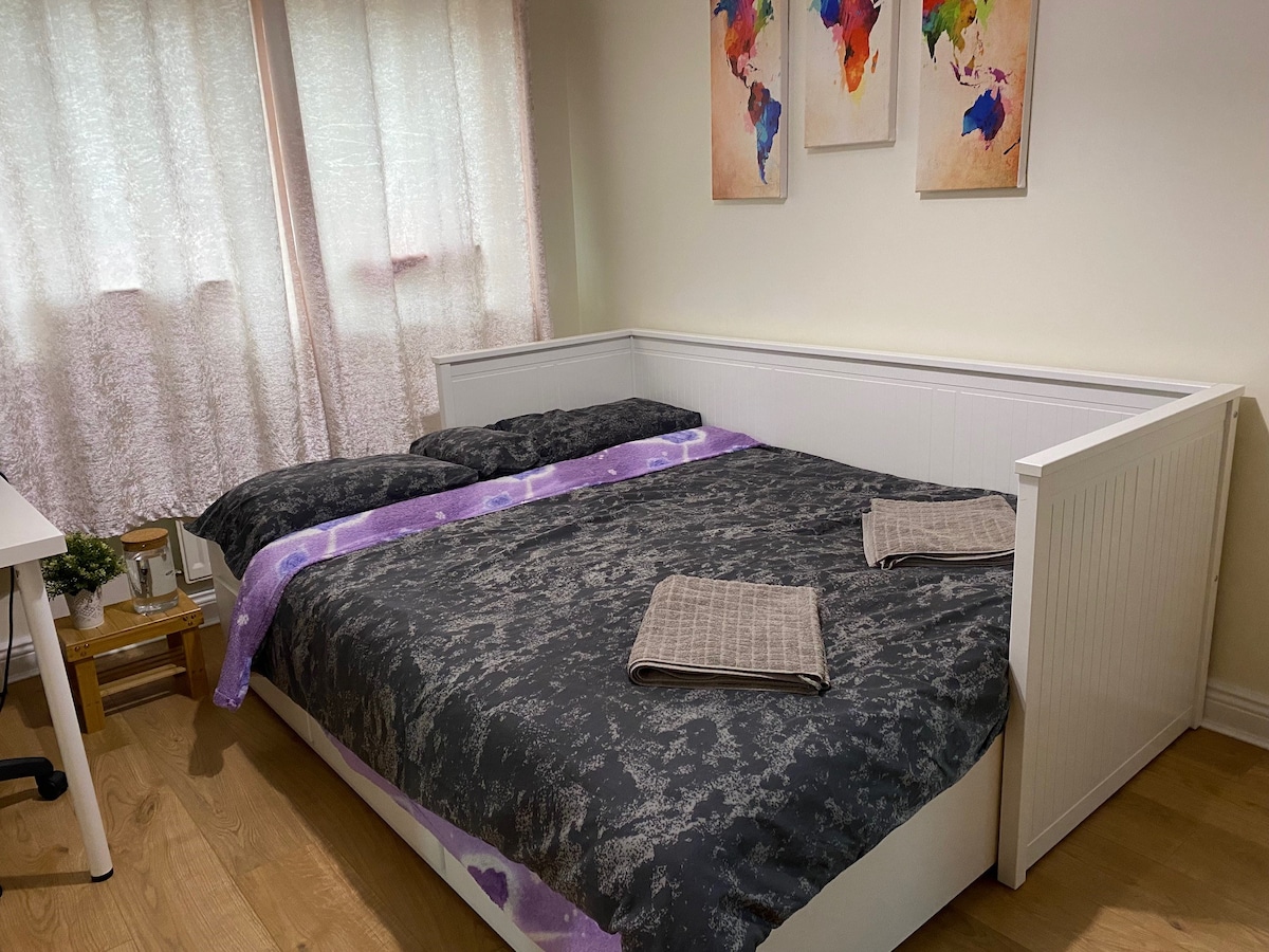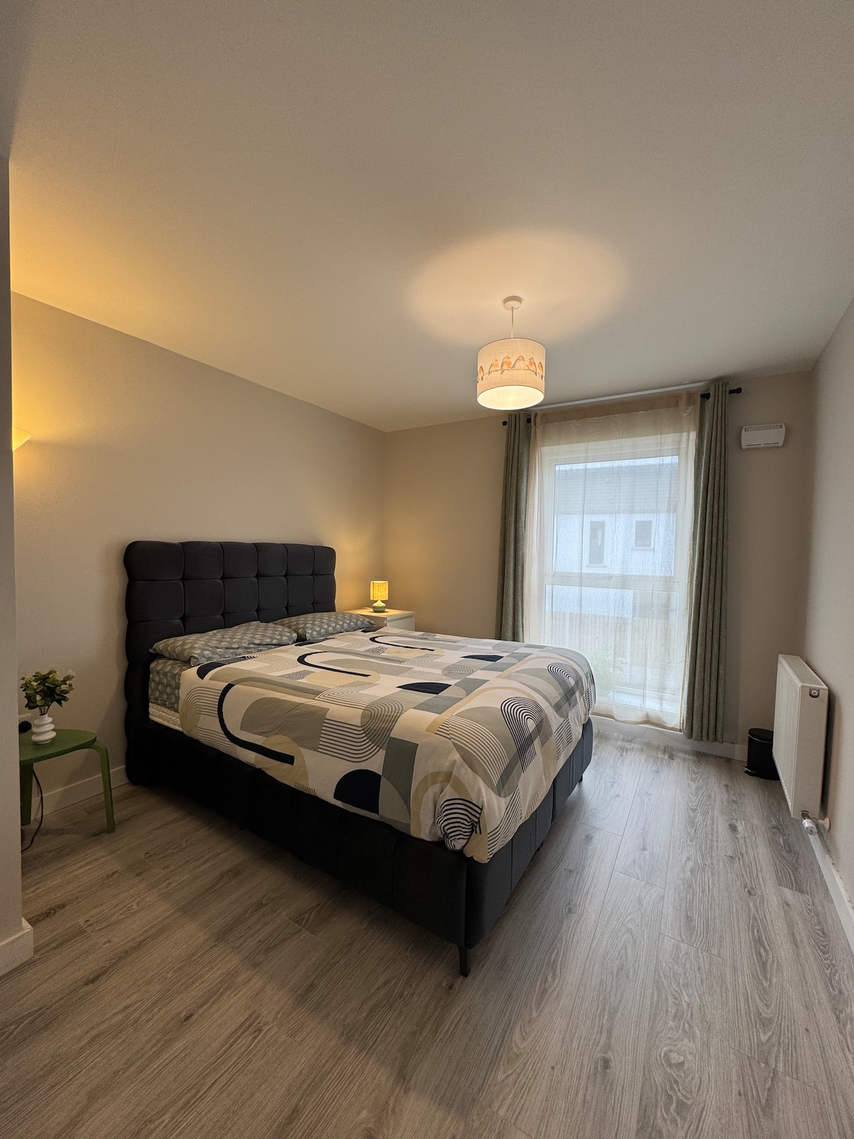 Welcome to this relatively new listing, Escape to this cosy home, 25min from the heart of Dublin city. This large en-suite bedroom comes with a king-size bed. The apartment offers a fully equipped kitchen, an outdoor shared terrace, and super fast Wi-Fi. Enjoy lovely green views from the balcony, relax in the spacious living area, easy access to Dublin city centre via Coolmine train station just a 2 minute walk. 48h free parking in two 24h periods. Paid car parking next door.