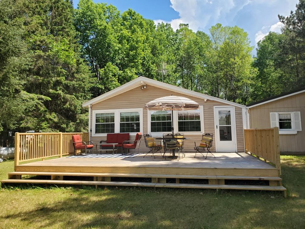 Disconnect from the hustle & bustle of everyday life and unwind with loved ones at this charming Northwoods lakeside cabin. Savor the tranquility while enjoying swimming, fishing, kayaking, and wildlife. The knotty pine interior, complemented by vaulted ceilings and fireplace, creates the perfect ambiance for a relaxing getaway. The large deck and fire pit area offer a peaceful setting to unwind, while the large level lot & pier provide ample space for outdoor activities and stunning views.