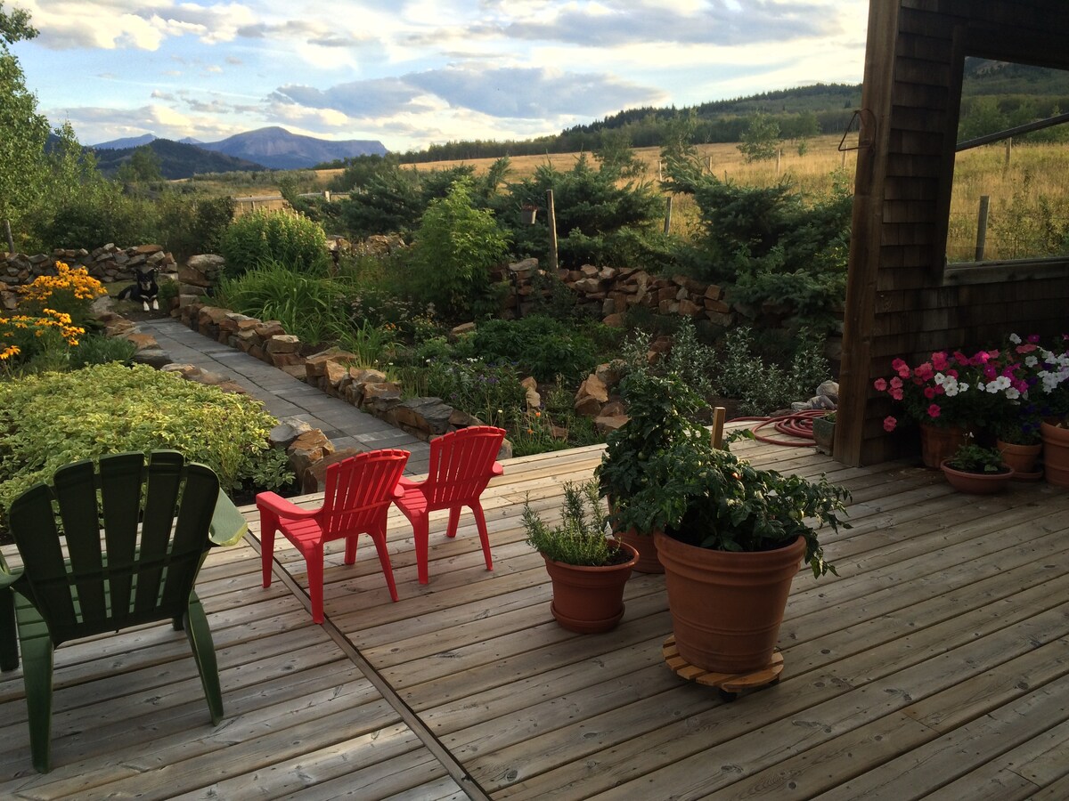This is a new cabin nestled among huge willows with an amazing view of the Rockies in the distance. There’s a vintage clawfoot tub and shower outside on the deck, and a new compost outhouse tucked behind at the back of the cabin, how cool is that! Inside is a comfy king bed with soft linens, antique table and chairs, microwave, French press coffee maker , toaster and a BBQ outside. There are lots of lovely shade trees and fire pit area for your own picnics.