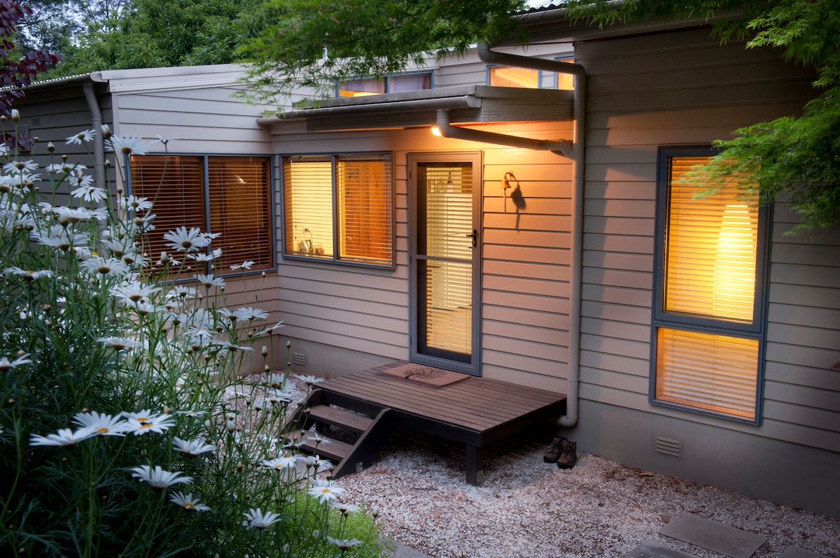 The Small House is mid century designed home within a 8 minute walk to Healesville Main St. Enjoy Egyptian cotton sheets, SMEG appliances and deluxe ASPAR and AESOP bathroom toiletries. Relax wth a glass of wine on the deck in the garden or in the brand new alfresco entertaining space. Walk to award winning Four Pillars, Peyton & Jones cellar door and No. 7 urban winery and tapas restaurant. Enjoy Nespresso coffee, farm fresh eggs, artisan bread and a bottle of local wine with every stay.