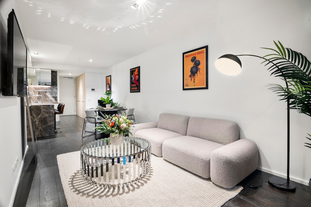 Upon Staying at The Prestigious Green Suite! - Front row seats to Formula 1 Track from Accomodation. - Queen Suite|Hotel mattress & linen |1 queen sofa bed (optional). - Kitchen SMEG Appliances and Nespresso Machine. - Designer Interior: Contemporary Country Road finishes. - Lux Bathroom: Sheridan Towels|Alive & Glow Lab Soaps. - Balcony with City & Albert Park Panorama. - Smart TV, High-Speed WiFi, Laundry. - Tablet Directory to Local Recommendations. - Free Dedicated Underground Parking.