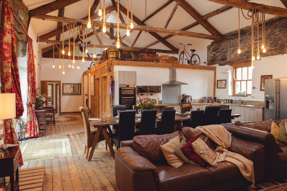 A perfectly located 18th century agricultural stone barn (1.8m from Windermere). Revamped with modern amenities, but still with a rustic feel. Situated on our Stud Farm just outside Windermere in the village of Ings, a stones throw from the village pub, farm shop and local cafe. Directly accessed off the main road and beside the bus stop with direct links to a number of walks/cycle passes. This upmarket Bunkbarn is one of a kind with secure parking, storage and catering for disabled people.