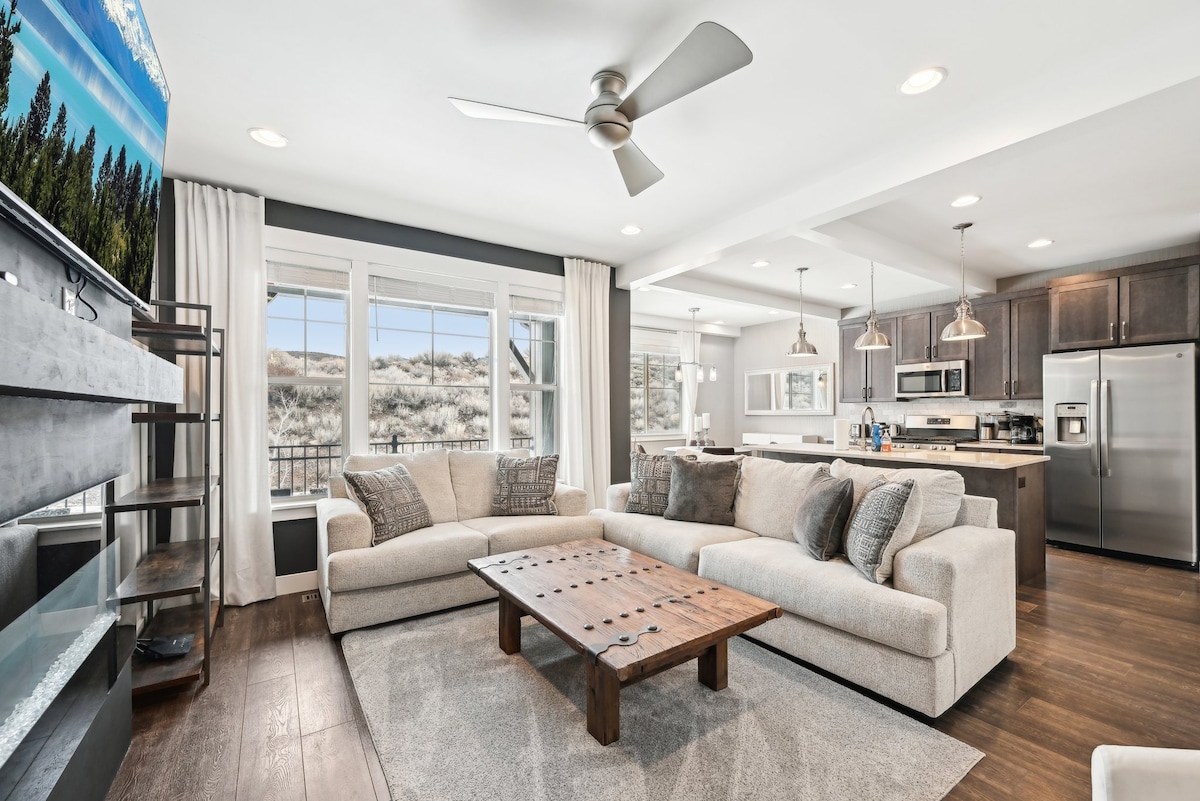 Brand new, professionally decorated, two primary bedrooms and dedicated workspace with large monitor. LOW cleaning fee, we welcome short and long term stays. ☞ 8-Person Hot Tub ☞ Free Shuttle/5 min drive to Deer Valley Gondola ☞ Scan QR for 3D tour ☞ Fire pit, grill on the back patio ☞ Chef's kitchen, Viking appl ☞ Garage for 2 large cars ☞ Great for multiple families and large groups ☞ High end mattresses, sheets and towels ☞ Large SMART TVs Perfect year round location for all activities.