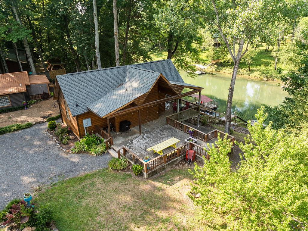 Great lake retreat with a large covered and uncovered deck space for relaxation and star gazing. Lake house sits on a flat 2.5 acre lot with private access to expansive rock point for swimming, fishing and sitting and relaxing with the lake all around you. Master suite: king bed and 20 ft ceilings; Guest room: one bunkbed and one queen bed and TV with DVD player. Cozy living room and kitchen, wood burning fireplace, SmartTV. Good cell signal, wifi, and fire pits for s'more roasting!