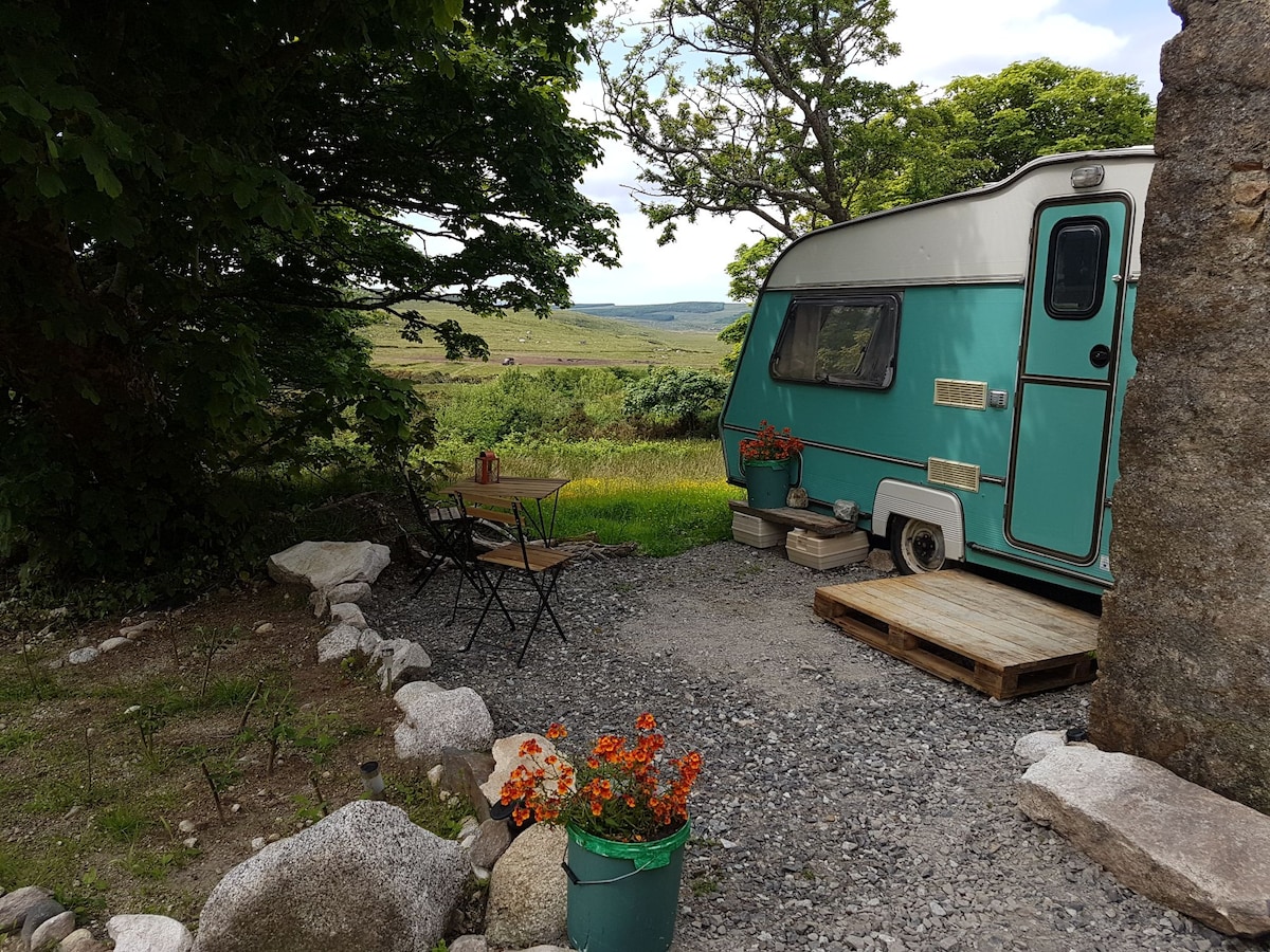 The Teacup Vintage Caravan at the Greenhouse Eco Cabin is set in 18 acres of remote wild countryside in the hills of Donegal. Our aim is to live a simple, basic life in comfortable cosiness with some added quirky features. So our shower conserves water, it's a pump shower which will get you washed but won't be high powered! Our dry compost toilets don't use water for flushing, just sawdust. But read the reviews and you'll see the experience is unique and generally loved by all our guests