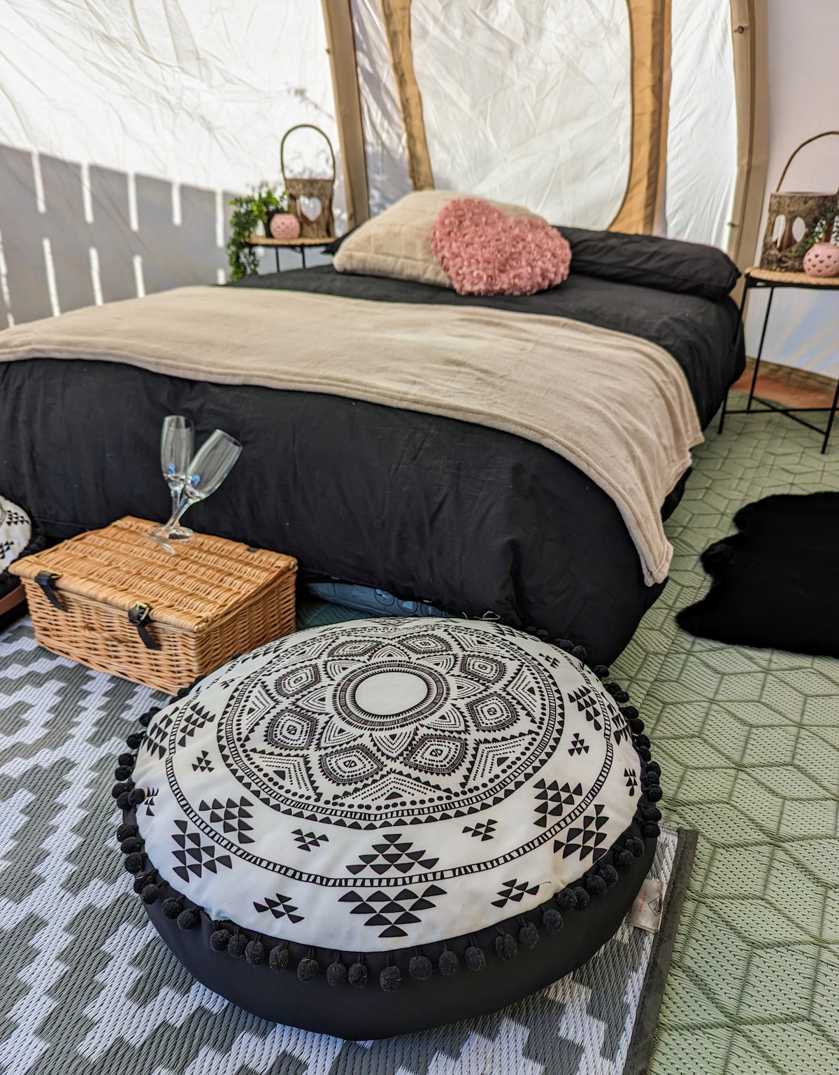 Our luxury off grid retreat comprises of a 5meter bell tent and offers guests the perfect combination of outdoor living style with all the comfort of a five-star hotel. With king size bed (with hotel standard mattress) and lots of special touches. It's the ideal romantic getaway for couples looking to escape the everyday and spend some time in nature. Based on an organic working farm in Dumfries and Galloway. PLEASE READ THE FULL DESCRIPTION BEFORE BOOKING