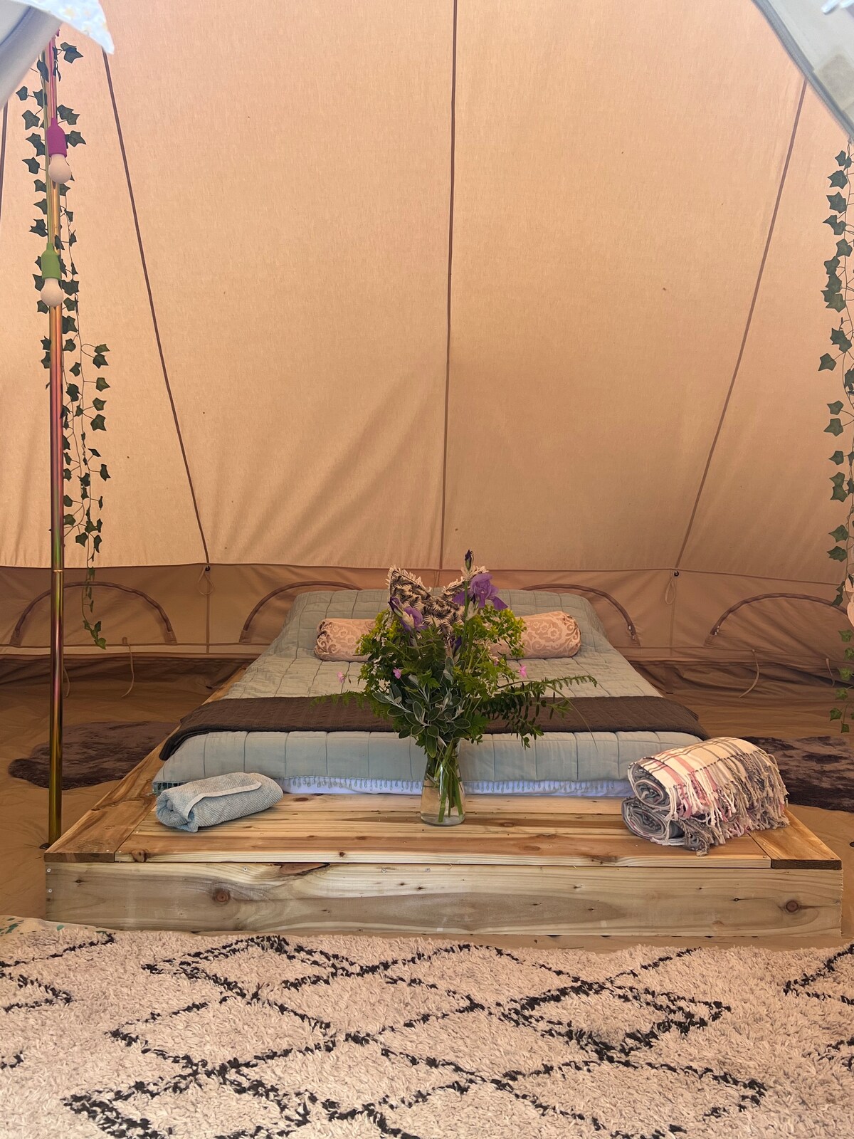 家具齐全的钟形帐篷,配备电热毯!