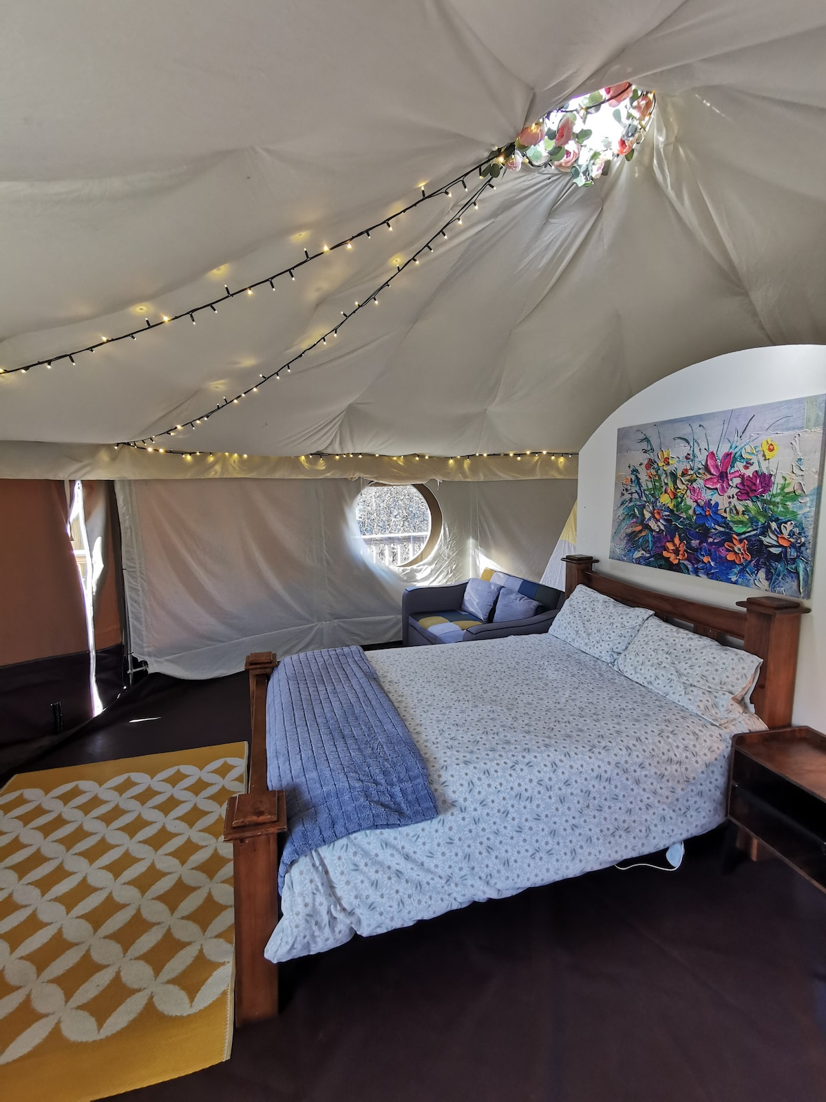 For the first time since we installed it we are opening for the winter months as there are a lot of people around and the weather at the moment is quite warm. To do this we have installed a small oil heater which will keep the temperature up even when the fire is not lit. Once you light the fire it will be really cosy and warm. There is also an electric blanket on the bed for those colder nights. We do reserve the right to move you to the house if the weather becomes inclement.