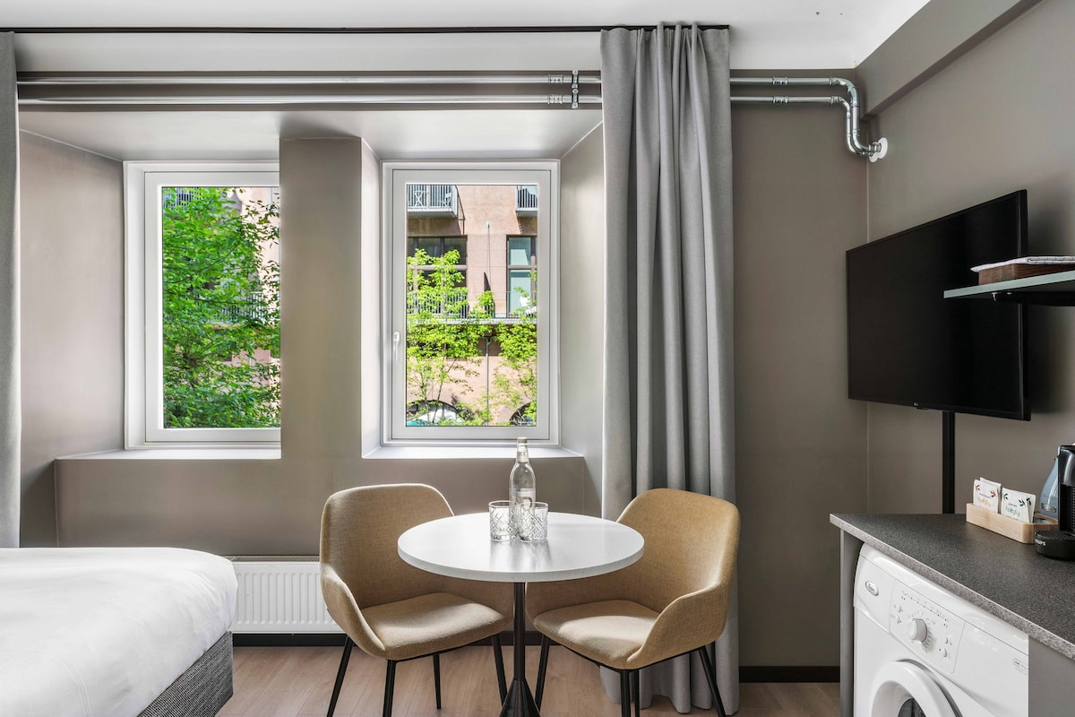 This modern studio offers one bedroom across 19 sqm of space. Ideal for up to two people, its double bed (160x200) and modern shower make this stay a perfect way to experience Oslo. It also offers a kitchenette, sustainable coffee, a kettle and a mini fridge, so you’ll have everything you need for maximum comfort and minimal stress.