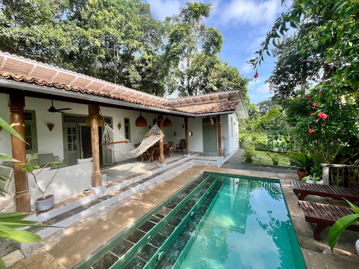 Welcome to our enchanting, stylish 1-bedroom house nestled amidst the serene beauty of lush paddy fields. A unique and unforgettable stay awaits you at our new one of a kind villa. The moment you arrive, you'll be captivated by the idyllic surroundings of this charming retreat. Picture yourself waking up to the rustling of bamboo trees and the symphony of bird calls. This exquisite hideaway is designed to immerse you in nature with easy access to stunning beaches and historic Galle Fort.