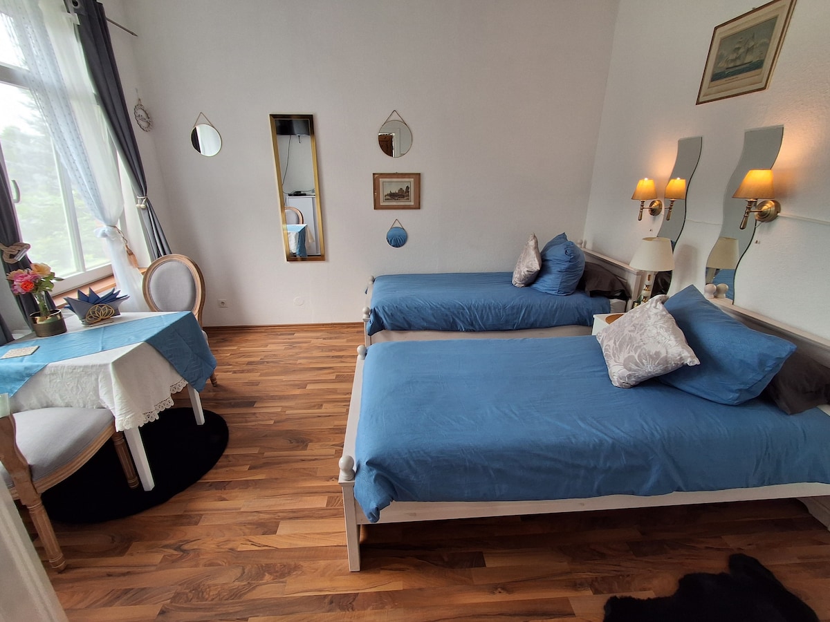 A small apartment totally independent with two beautiful terraces located in a quite & nice place surrounded by nature. Fully furnished kitchen, TV, WiFi. It has an insuite bathroom with shower. We offer American Breakfast for 10 EU p/p which is extra paid. Our farmhouse is a typical German house dating back from 1925 (100 years old!) that is situated on a 2 hectares farm.