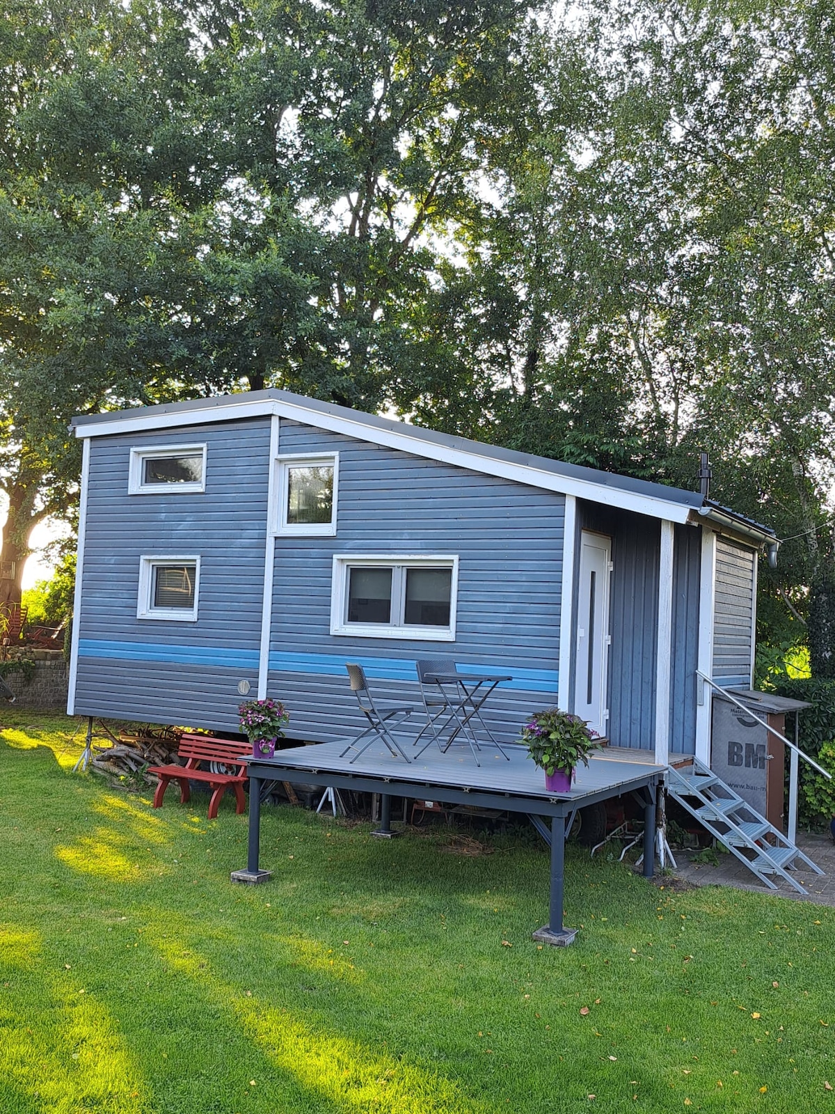 Handgefertigtes Tiny House für zwei Personen. Direkt am See, mit großer Terrasse und Sauna. Das Haus wurde mit ökologischen Materialien (Holzfaserdämmung, Lehmputz) gebaut und liebevoll mit Massivholzmöbel eingerichtet. Es verfügt über ein Doppelbett 160 x 200, eine Couch, eine voll ausgestattete Küche und ein Bad mit Dusche und Trockentrenntoilette. Das Haus ist gut mit der Bahn zu erreichen, der Bahnhof Hämelerwald ist nur 15 Minuten zu Fuß entfernt.