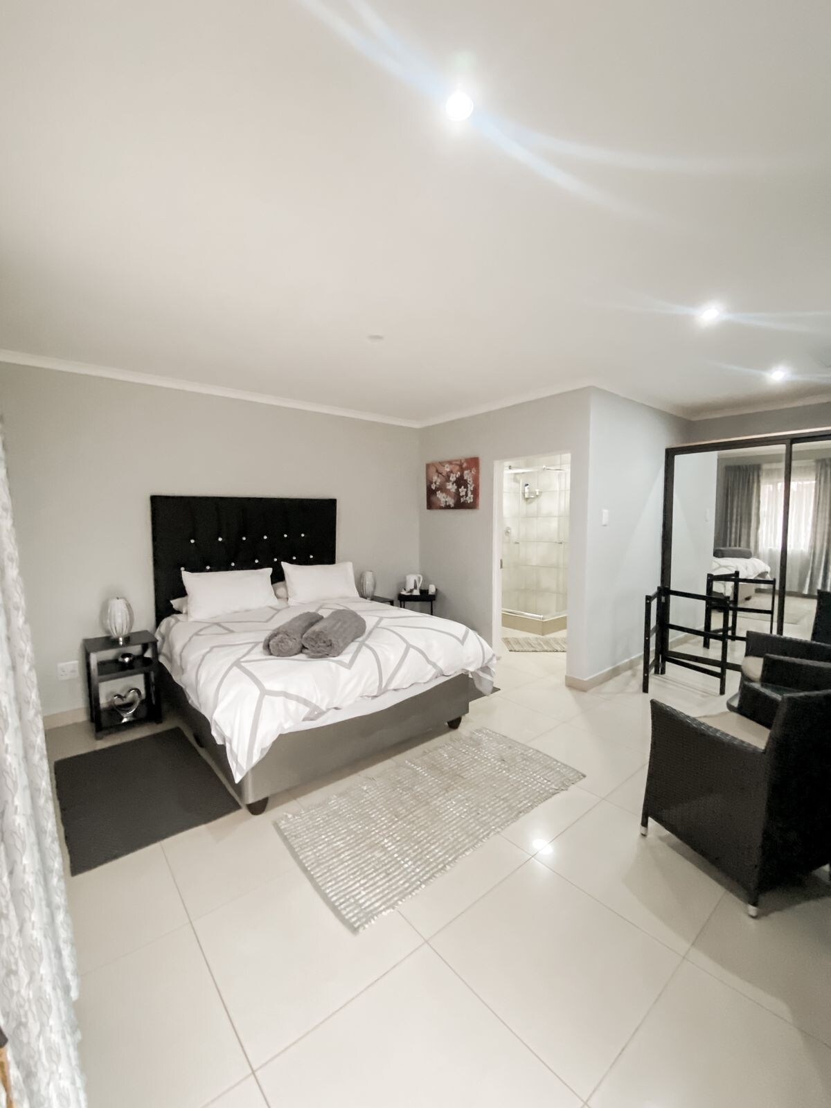 15 Min from OR Tambo. This chic black-and-white space, in a secure gated complex, offers a perfect blend of comfort and convenience. Enjoy a dedicated parking spot, lock-and-go lifestyle, and remote gate access. With a luxurious queen bed and double bed, office space, and high-speed Wi-Fi, it’s ideal for work or relaxation. The fully equipped kitchen includes a gas hob and dishwasher. Relax on the cozy balcony and enjoy premium furniture, bedding, and dining essentials.