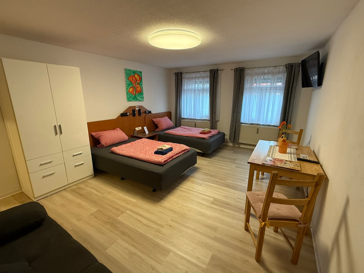 Meine Gästewohnung bietet auf 45 m2 Platz für 2-4 Personen. Sie ist gemütlich-modern eingerichtet und lädt zum Verweilen ein - so sagen es meine Gäste :-). Nach einem langen Ausflugstag ermöglicht einem das separate Schlafzimmer etwas Rückzug. Die Wohnung verfügt zudem über eine eigene Küchenzeile und ein Duschbad. Bei mehr als zwei Gästen kann das Schlafsofa zu einem Doppelbett umgebaut werden.