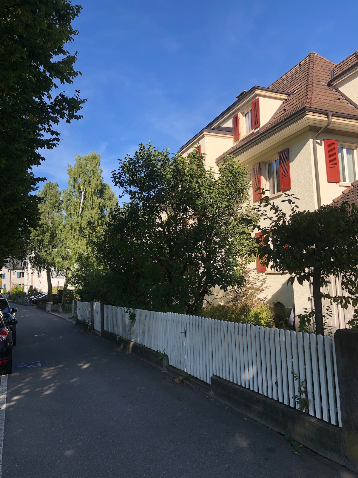 Unser Einfamilienhaus befindet sich an einer Privatstrasse. Das mittlere Stockwerk ist für unsere Gäste eingerichtet mit 3 individuell und liebevoll eingerichteten Schlafzimmern mit bequemen Betten, einer vollständig ausgestatteten Küche, einem grossen, hellen Badezimmer (mit neuer Dusche) - wurden im Dezember 2023 renoviert - und einem Balkon.. Schnelles WLAN und Parkplätze sind verfügbar.