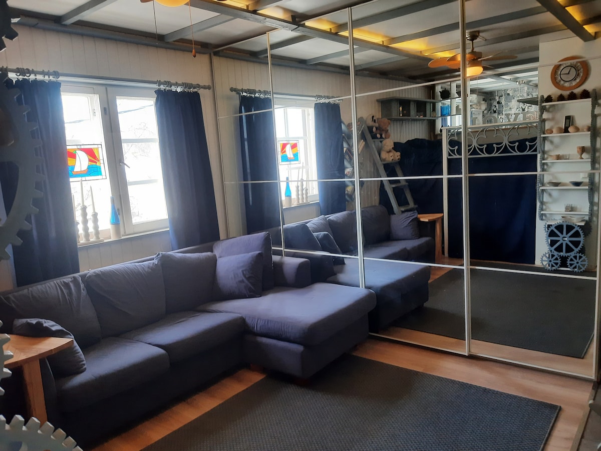 Kanavanrannalla tunnelmallinen ja viihtyisä paikka, jossa voit rentoutua takkatulta tai katon tähtitaivasta katsoen ja pelata monopolia tai lukea. Kesällä voit uida kanavassa tai sup-lautaillaan ja ihailla risteilyalusten ohi lipumista. Jäähdytys hoituu ilmalämpöpumpulla. Sup-lauta on yhdelle hengelle. Täällä saat myös jäätelöt pakkaseen tai grillata terasilla.