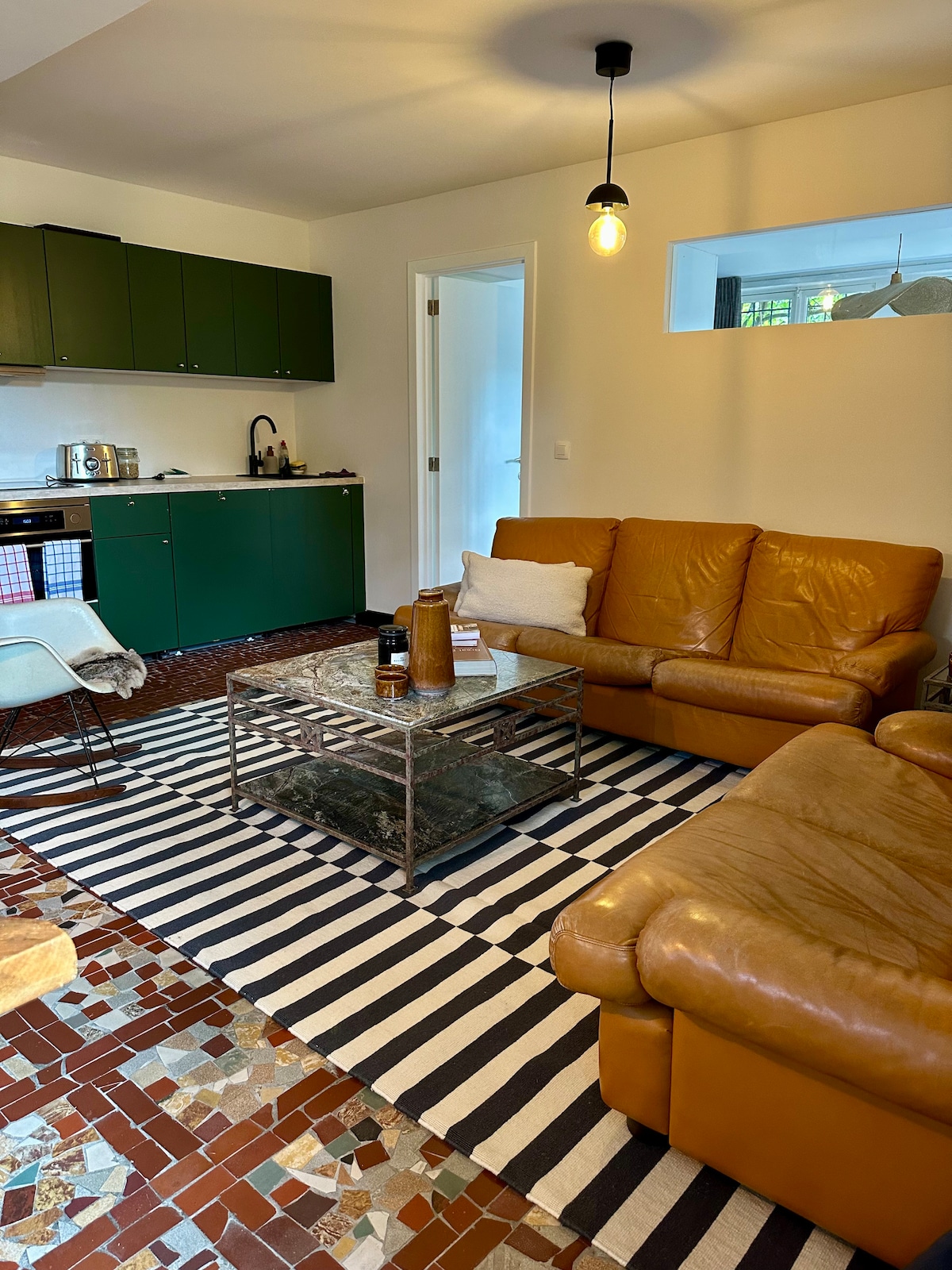 Ik ben Hanne (muzikante en meubelmaakster) en woon met mijn 2 zoontjes in het gezellige Herenthout. Het huisje in onze tuin is op een unieke manier gerenoveerd met zoveel mogelijk gerecupereerde materialen en meubels. Het meubilair verandert regelmatig en is ook te koop! Het is een open ruimte met aparte badkamer en toilet. Het slaapgedeelte kan worden afgesloten met een gordijn.