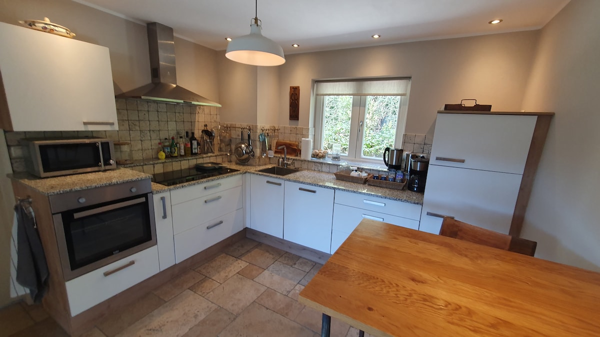 Enjoy this stylish space, "Wäller Haus", completely surrounded by a vast natural garden. A place for young and old, where you can relax and spend a wonderful time together. In winter in front of the fireplace and in summer around the BBQ enjoying the sunset. On colder days a campfire keeps you comfortably warm outside. This modern house is the place to recharge in all seasons. (No wild drinking parties, thank you)