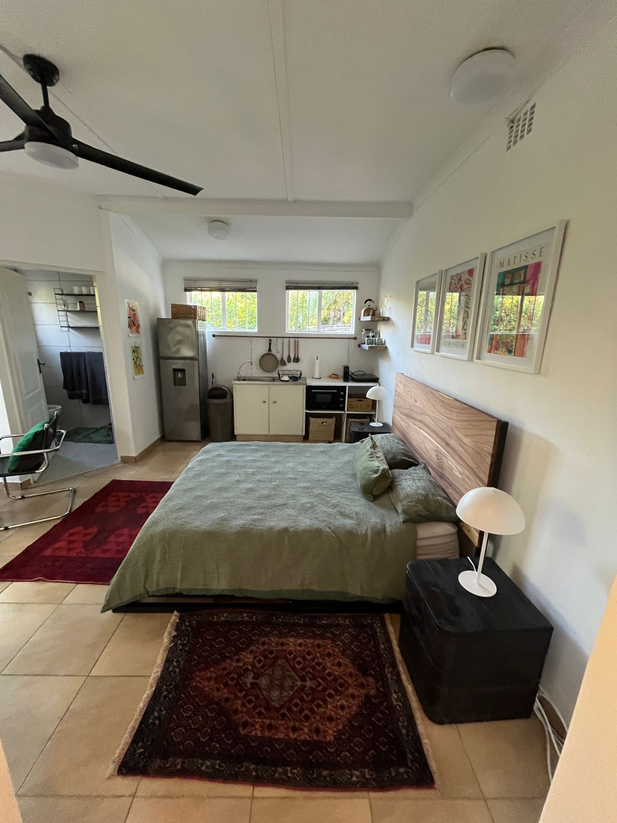 Solar Powered (no loadshedding). A tranquil indoor-outdoor living space ideal for couples or business travelers. The stylish studio opens up onto a large patio with braai. Enjoy our long summers outdoors! The studio has a separate entrance from the main house. Queen bed with open walk-in shower & separate toilette . It has fiber WI-FI, TV (full DSTV), a tiny kitchenette with tea/coffee making facilities, toaster, microwave, fridge & single induction plate. Secure free onsite parking available.