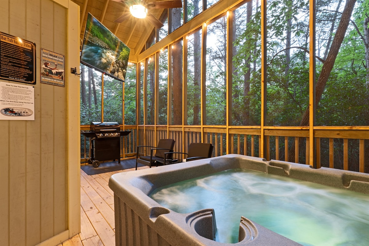 Welcome to Bear Ridge, where you can relax with your entire family. This two story cabin is less than one mile from downtown Helen and is nestled in the woods right outside the city limits. You are close enough to walk into town and secluded enough to enjoy outdoor living on the front porch or one of the two back decks. The upstairs back deck has a table for two and places you up in the trees. The bottom deck has a hot tub, outdoor seating and a gas grill so you can make yourself at home.