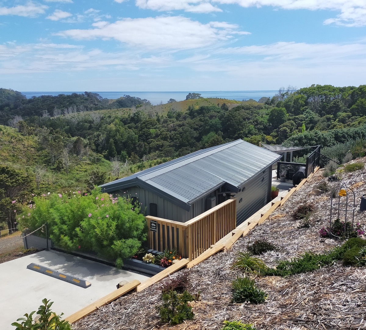 Luxurious Eco House in Rural Paradise Experience modern eco-living with a rustic touch in our off-grid, private retreat. Newly built and self-contained, this haven offers stunning valley and ocean views, making it perfect for relaxation and unwinding. Enjoy the tranquility and beauty of nature in this unique and comfortable getaway.