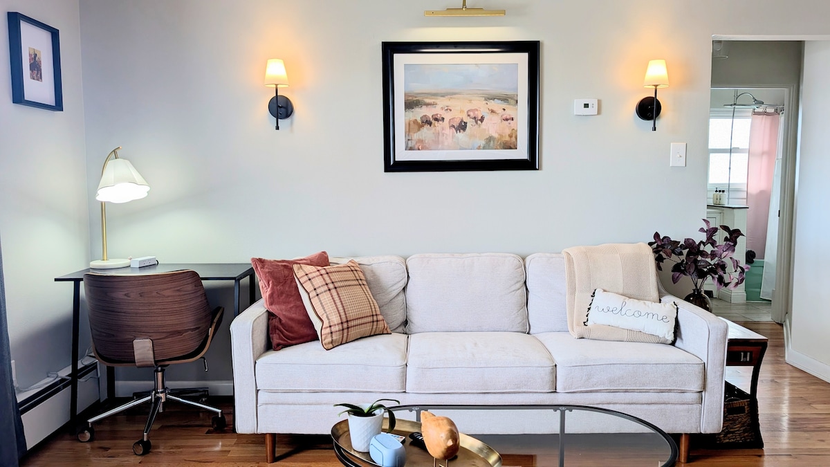 This comfortable, well appointed studio apartment overlooks downtown Helena and the surrounding valley. Two blocks from the Montana State Capitol building, and a short 20-minute walk from the historic Last Chance Gulch shopping/dining district, this beautiful place comes equipped with a king-sized bed, a full-sized futon, a well-stocked kitchen, and a private bathroom. Did we mention the views?