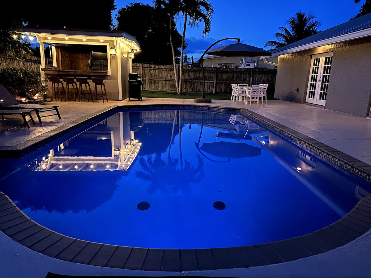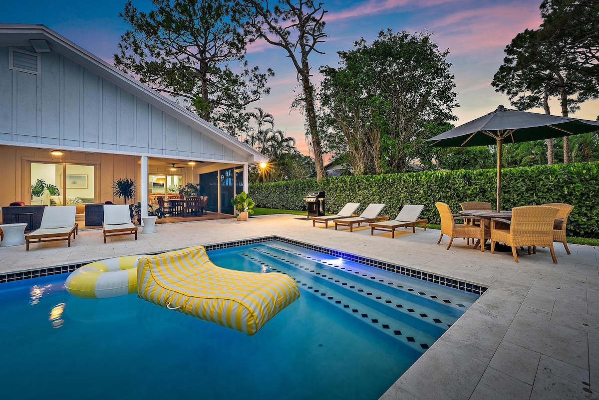 Time for fun in the sun with the whole family or group of friends. Enjoy your peaceful and private vacation at Purple Paradise – a completely renovated, modernized, and beautifully decorated home located in the heart of Tequesta. Relax poolside while BBQ’ing on the grill or take a 5-minute drive and be at beautiful beaches, restaurants, bars, parks, shopping, golf courses, and outdoor water activities. Pets are welcome and are sure to enjoy the fully fenced in private backyard.