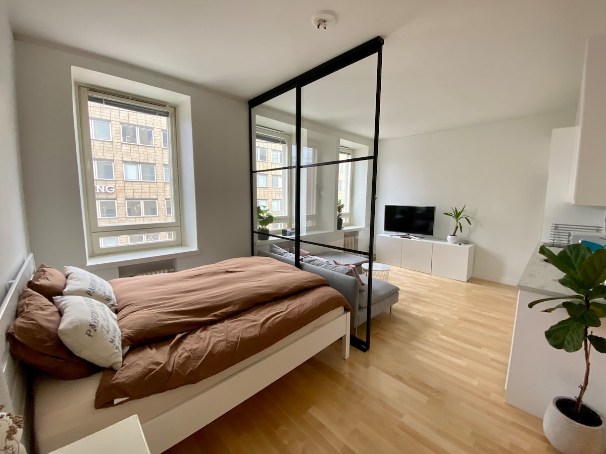 A furnished studio apartment with Scandinavian style and a fully equipped open layout kitchen. Scandi apartments have light design and plenty of natural light. Scandi offers comfort and convenience for everyday living. Get the practical things like a fully equipped kitchen, washing machine, fast WiFi, 24/7 support, and regular professional cleaning, and fun stuff like a smart TV. Stay in comfort for as long as you’d like – days, weeks or months.
