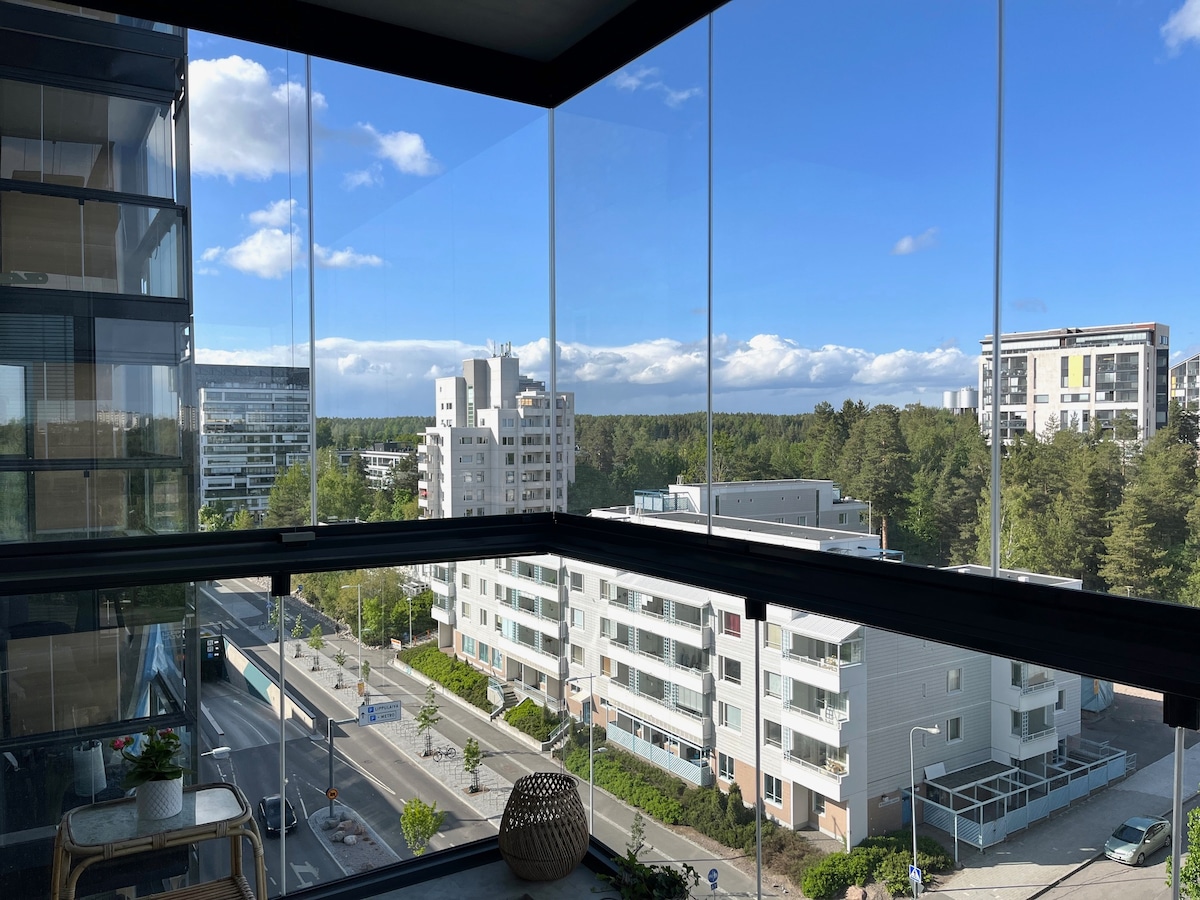 Stylish apartment right beside Lippulaiva shopping centre/underground station (metro 27 min to Helsinki city center). Equipped to a very high standard, with everything you need for a relaxing stay or a work related visit. - 39 m2, living space with kitchen, bedroom, bathroom and a spacious balcony - ideal for 1-2 persons, accommodates up to 4 people - high speed WiFi, TV - indoor parking (ask for price), with easy access to the apartment