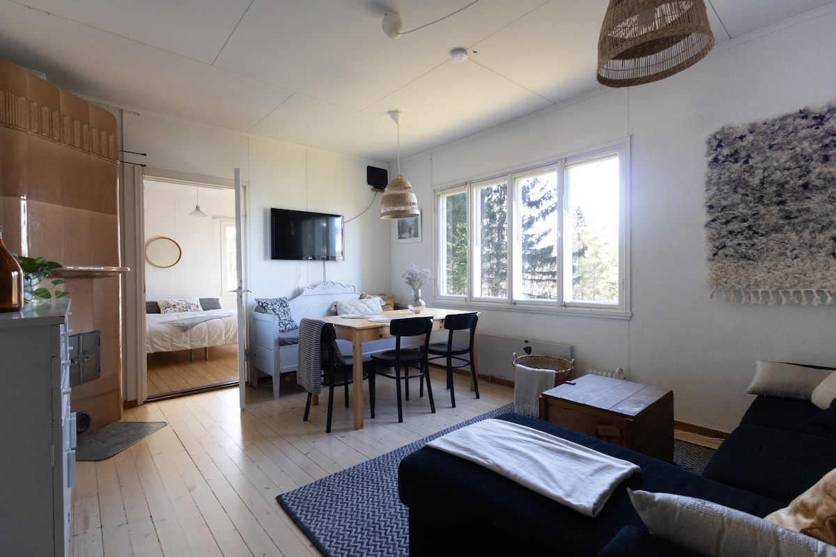 Saunaboat Haikara (25m2) is an unique place surrounded by nature and wildlife. 35 km from Helsinki. Experience the purity of Finnish nature in historic location. Feel the silence, sea, rich flora and fauna. Relax: take a swim and sauna. Iceswimming in wintertime. Small living room with the kitchen(fridge, micro, tea and coffee machines, electric cooking plate, not an oven), toilet, original Finnish wood-heating sauna and terrace. Wifi. Electric heating