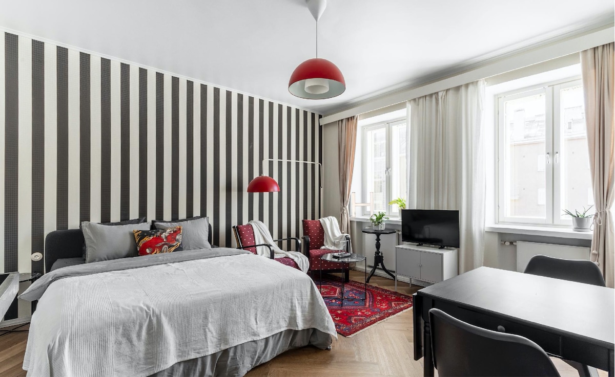 Kompakti ja viehättävä helmi-asunto sijaitsee kolmannessa kerroksessa rauhallisen takapihan puolella, Helsingin Töölön alueella. Liikenneyhteydet ovat erinomaiset kaikkiin suuntiin. Viihtyisässä huoneessa on kahden hengen vuodesohva, oma wc- ja suihkutila, pyykinpesukone sekä minikeittiö. Kaikki palvelut, kuten kaupat, ravintolat ja apteekit, ovat talon ympärillä. Suomen maamerkit, kuten Sibeliuspuisto, Olympiastadion ja Oopperatalo, metsät ja merenrannat ovat vain lyhyen kävelymatkan päässä.