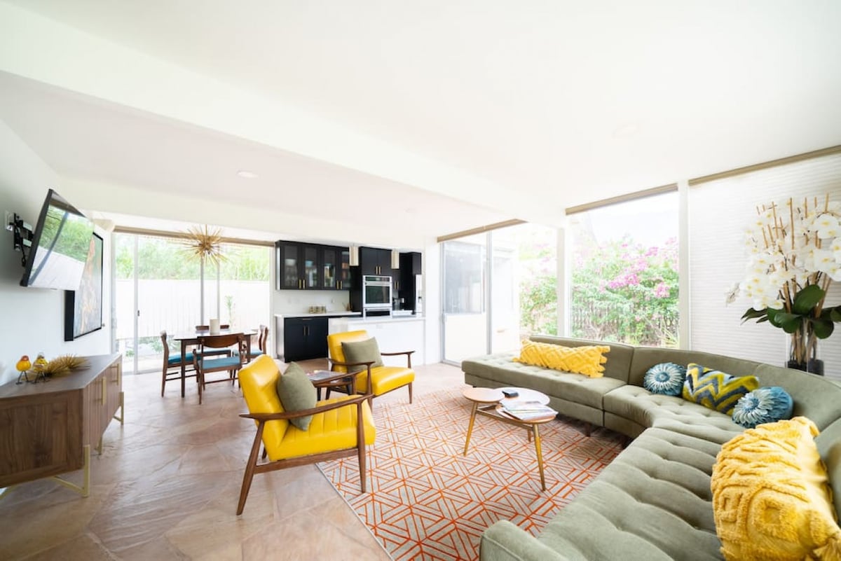 Entire Stylish Mid-Century home-Perfect for Cozy Getaway! Garage parking…2 BDRM w/ Fireplace & A/C. Nearby Attractions: Ontario International Airport-55 min SOBOBA Casino-10 min Morongo Casino-30 min Cabazón Outlets-31 min Lake Perris&Diamond Valley Marina-36 min Lake Elsinore-40 min Idyllwild Park-36 min Temecula Wine Country-36 min Aerial Tramway-50 min Nearby: Golf Rancho Bravo, Little Lake & 123 Farm;CA Route 62, Cabazon Dinosaurs, Hemet Theatre & Museum, Ramona Bowl Amphitheater.