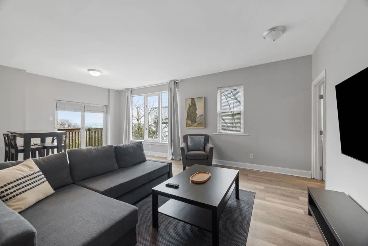 One of the few furnished rentals on Grandview Ave, the famous road with million dollar views in Pittsburgh! Completely remodeled to the studs as a short-term rental, our place exudes Pittsburgh charm. Work from home with spectacular views of the city from your vintage desk, relax on the couch and watch the 60" TV, or just hang out on the king size bed! We're just a block from Shiloh St., with 10+ bars & restaurants, but you're always able to cook at our fully stocked kitchen!
