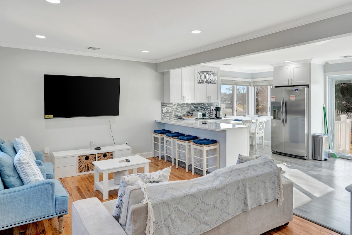 Kick back and relax in this calm, stylish space. PRIVATE ENTRANCE PRIVATE APARTMENT Located near the Creek in the prime Baldwin Harbour area of Long Island. Newly renovated apartment. This is the first floor of the house, entrance located at the side of the through the side yard. - Large 1 BED/ BATH - King Sized Bed - Private Apartment - Lovely Kitchen - Eating area - 4 Plates + - 4 Bowls + - Eating utensils - 55” HDTV with Amazon Prime Video + Laundry mat less than half a mile away