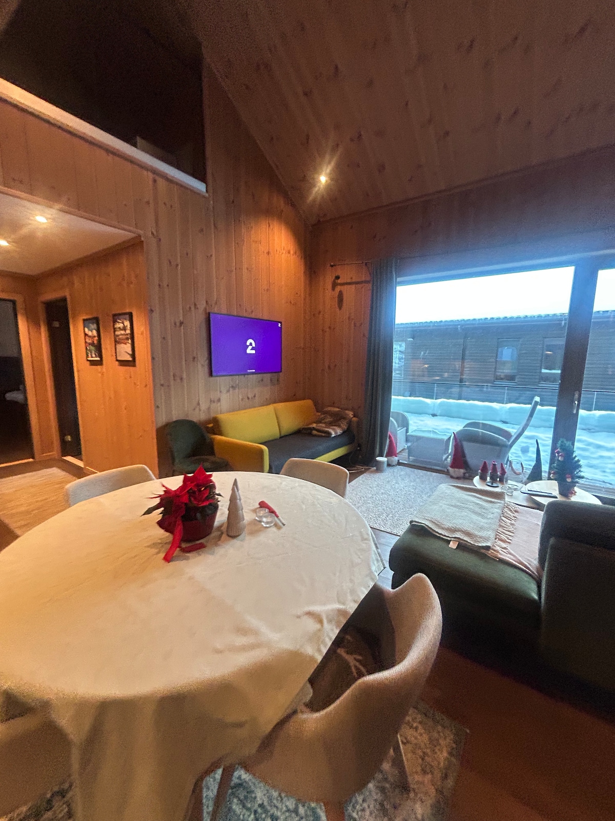 房源位于阳光明媚的一侧,距离Hemsedal滑雪中心仅5分钟路程