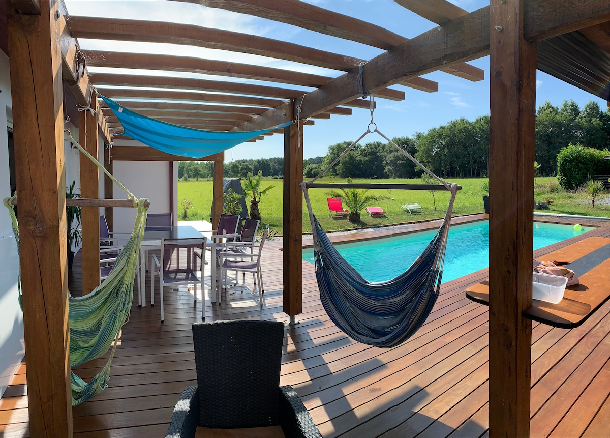 La Villa sous les Pins est une superbe maison contemporaine de 180m², située dans un écrin de verdure de 3000 m² en lisière de forêt. Avec une piscine (chauffée de juin à septembre), une grande terrasse, une orientation plein sud, la villa est à proximité de l'océan, du lac de Soustons et des golfs de la région. La maison a été conçue comme un refuge idéal pour être au calme et profiter de la nature et de l’océan. Venez vous reposer en famille et entre amis au cœur de la Gascogne landaise !