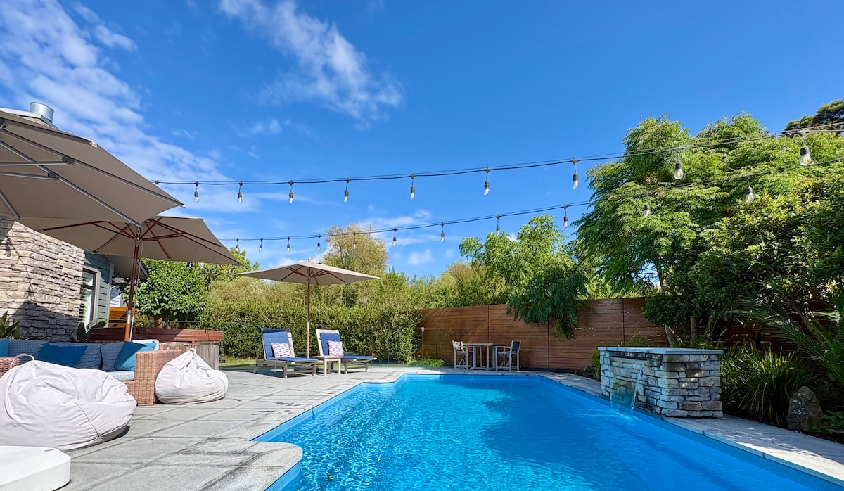 Don't be fooled by the name, the NZ Summer house is idyllic all year round. Set on an equestrian lifestyle property down a quiet country lane. Open your bedroom doors to the relaxing pool area or private outdoor courtyard off the bedroom and enjoy a cup of coffee with the sounds of nature. 30 minutes from the CBD and close to award-winning restaurants, vineyards and the west coast beaches. Bring your walking shoes or bikes, we are within walking distance to the Riverhead forest.