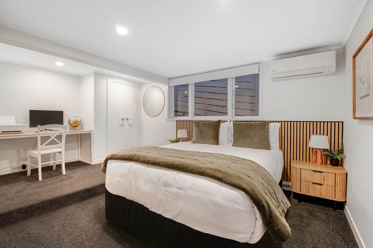Large space you access by private entrance using smartlock technology. Very peaceful, private & furnished more as a beautiful home than a hotel. Our guests keep telling us how much they love the projector, which turns a wall into a Cinematic movie theatre! Luxury linens, comfy furniture and secure offstreet parking. Five min walk to the best Factory Outlet Mall in Auckland and 10 mins to our beautiful Iconic Cornwall Park. Bus stop outside the gate and train station nearby.
